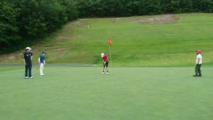 AJG協力プロによる参加者のレベルにあった指導の元、施設内各所にてレッスンを実施、午後は9Hをラウンドし、楽しみながら学んでおりました。