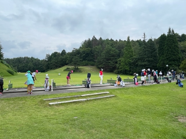 なかなか経験できないゴルフ場内施設での練習、打数を競い合う場としてセッティングされているコースでのラウンドは、